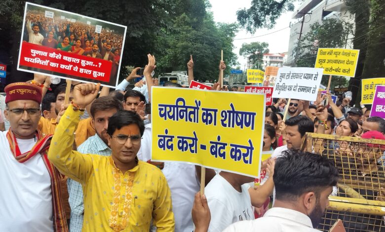 नियुक्ति की मांग को लेकर एलटी चयनितों को सीएम आवास कूच,रास्ते पर पुलिस ने रोका,धरने पर बैठे