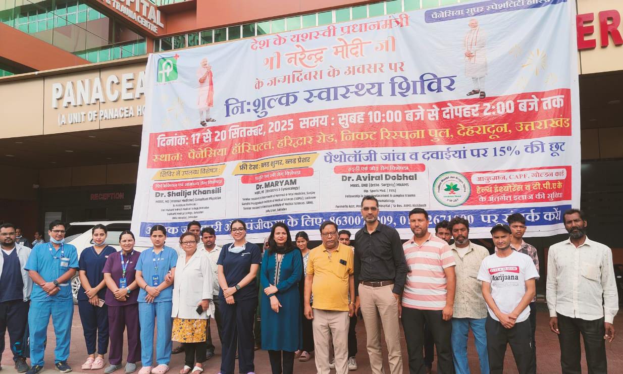 देहरादून 17 सितंबर । पैनेसिया सुपर स्पेशलिटी हॉस्पिटल द्वारा हमारे देश के यशस्वी प्रधानमंत्री श्री नरेंद्र मोदी जी के जन्मदिवस के उपलक्ष्य में “मानवता की सेवा के पथ पर” विशेष निःशुल्क स्वास्थ्य शिविर का आयोजन किया गया। यह शिविर अस्पताल परिसर में दिनांक 17 से 20 सितम्बर तक आयोजित किया जा है ।