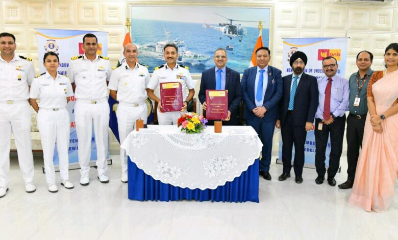 पीएनबी नें भारतीय तटरक्षक बल के साथ समझौता ज्ञापन पर किए हस्ताक्षर