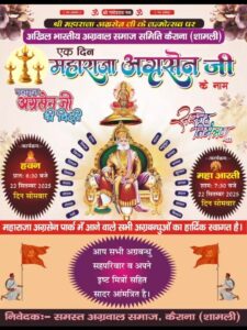 कैराना(शामली )। कस्बा कैराना में महाराजा अग्रसेन जयंती धूमधाम से मनाई जाएगी।