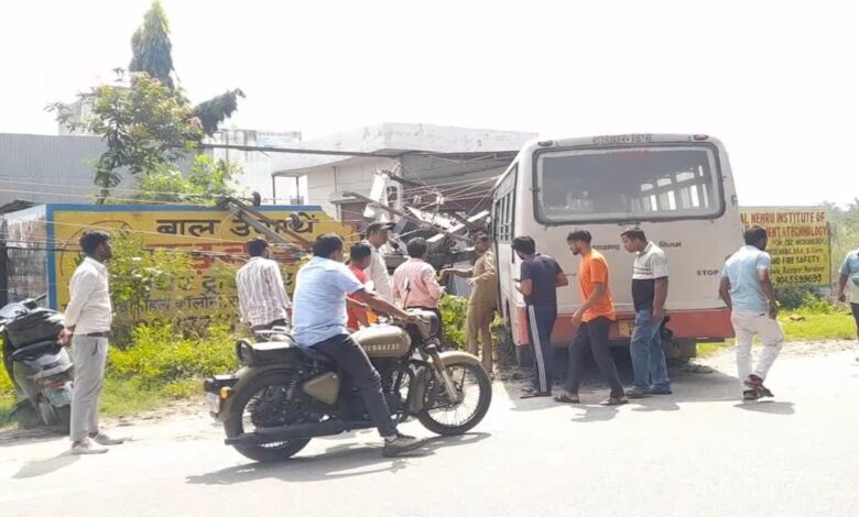 अनियंत्रित होकर पोल तोड़ते हुए ट्रांसफॉर्मर में टकराई बस,मचा हड़कंप