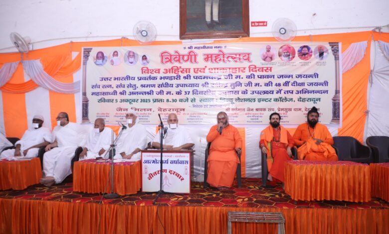अंतर्राष्ट्रीय अहिंसा दिवस पर हिंदू नेशनल इंटर कॉलेज देहरादून में जैन मिलन एवं श्री वर्धमान जैन श्रावक संघ के तत्वावधान में त्रिवेणी महोत्सव का आयोजन किया गया