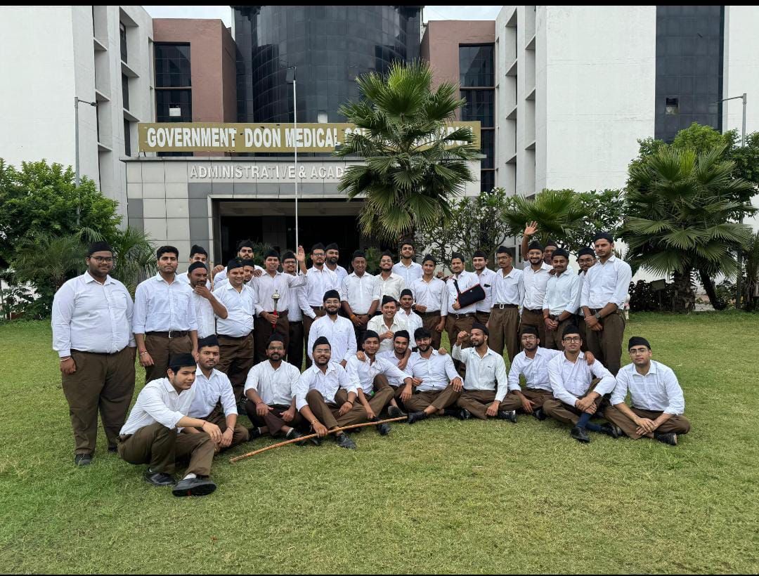 राष्ट्रीय स्वयंसेवक संघ के शाताब्दी वर्ष के उपलक्ष्य में दून मेडिकल कॉलेज के विद्यार्थियों द्वारा एक पथ संचालन का आयोजन किया गया जिसमें 130 विद्यार्थियों ने पूर्ण गणवेश में संचालन में भाग लिया