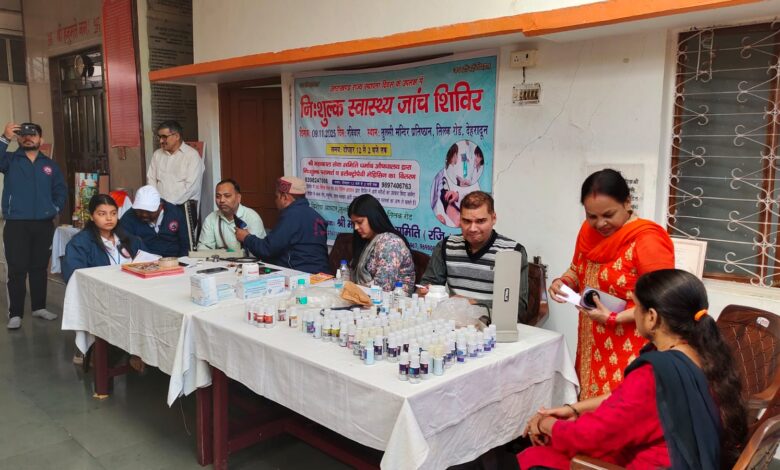 देहरादून। उत्तराखंड राज्य स्थापना दिवस के उपलक्ष में श्री महाकाल सेवा समिति द्वारा तुलसी मंदिर प्रतिष्ठान तिलक रोड़ में निशुल्क स्वास्थ्य शिविर का भव्य आयोजन किया गया, समिति के संरक्षक भागवताचार्य सुभाष जोशी व सुधीर जैन ने दीप प्रज्ज्वलित कर शुभारंभ किया जिसमें भारी संख्या में क्षेत्र वासियों ने स्वास्थ्य लाभ लिया, समिति के अध्यक्ष रोशन राणा ने बताया की उनकी समिति द्वारा पिछले दो वर्षों से तिलक रोड के पास मन्नु गंज छेत्र में एक धर्मार्थ औषधालय का भी संचालन किया जा रहा है जिसमें क्षेत्रवासी समय समय पर स्वास्थ्य लाभ लें रहे हैं, इसी के निमित वर्ष में दो से तीन बार स्वास्थ्य शिविर का भी आयोजन किया जाता है, जिसमें आज डाक्टर बिरेन्द्र मेहरा, डाक्टर नितिन अग्रवाल, डाक्टर भंडारी, डॉक्टर युद्धवीर सिंह, डाक्टर गोविंद, डॉक्टर के एम उनियाल जी द्वारा ब्लड शुगर, ब्लड प्रेशर, ई सी जी, व अन्य कई रोगों का उपचार वा निशुल्क दवाइयां दी गई इस दौरान शिविर में आए हुए राज्य आंदोलनकारी संदीप गुप्ता व मनोज उनियाल जी का समिति के सदस्यों ने अंग वस्त्र व स्मृति चिन्ह देखकर सम्मान किया इस दौरान समिति के बालकिशन शर्मा, एडवोकेट संजीव गुप्ता, डॉक्टर नितिन अग्रवाल, राहुल माटा ,आयुष जैन, गौरव जैन, विनय प्रजापति, हेमराज अरोड़ा, विक्रम चौधरी, सुमित बंसल, सुशील वाधवा ,शिवकुमार, सुरेश रावत, कृतिका राणा, अनुष्का राणा ने अपनी सेवाएं प्रदान की।
