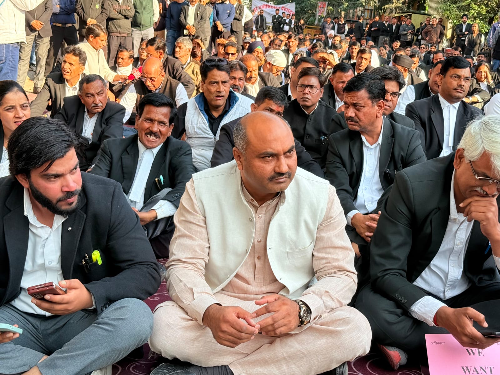 जन अधिकार पार्टी (जनशक्ति) के अध्यक्ष अधिवक्ताओं के समर्थन में पहुंचे धरना स्थल