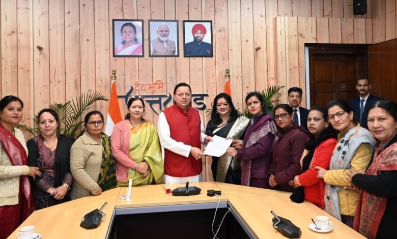 आंगनबाड़ी कार्यकत्री संगठन ने मुख्यमंत्री धामी को सौंपा ज्ञापन