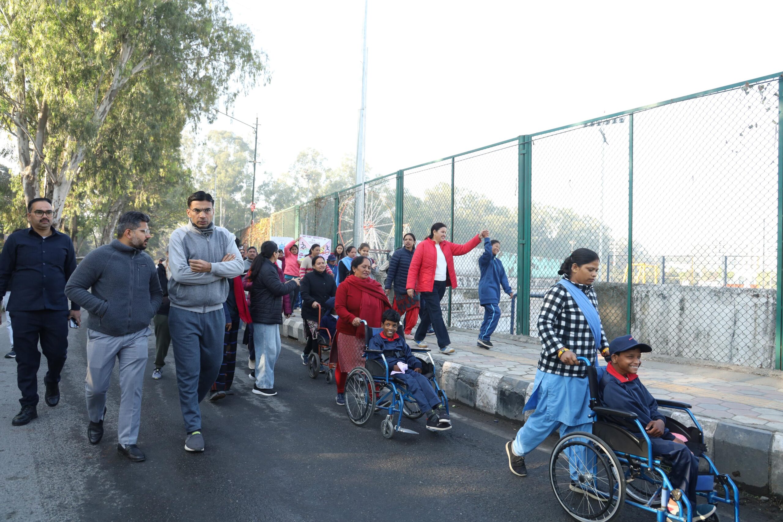 जिलाधिकारी सविन बसंल एवं मुख्य विकास अधिकारी अभिनव शाह ने स्वयं बच्चों के साथ ‘‘वॉक फॉर डिस्एबिलिटी’’ में पैदल चलते हुए दिव्यांगजनों को प्रोत्साहित किया। जिलाधिकारी ने बच्चों से संवाद कर उनका उत्साहवर्धन किया तथा समाज में समावेशन और समान अवसर सुनिश्चित किए जाने के प्रति जिला प्रशासन की प्रतिबद्धता व्यक्त की।