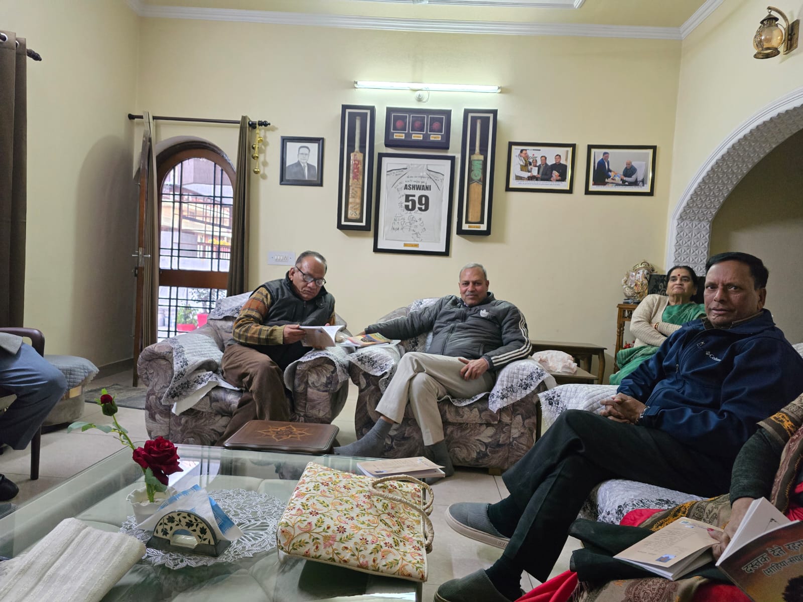 देहरादून 08 दिसंबर। वरिष्ठ साहित्यकार गीतकार डॉ॰ शिवमोहन सिंह के देहरादून निवास पर “पुस्तक परिचर्चा एवं लेखक से मिलिए कार्यक्रम” का आयोजन किया गया। परिचर्चा के केंद्र में रहे सुप्रसिद्ध कवि पवन शर्मा तथा उनकी पुस्तक “दस्तक देते रहना” (माहिया संग्रह)। लगभग डेढ़ घंटे तक पुस्तक पर साहित्य मनीषियों द्वारा चर्चा हुई तथा लेखक से प्रश्न पूछे गए ,जिसका पवन शर्मा जी ने बहुत कुशलता पूर्वक समाधान परक उत्तर प्रस्तुत किया। परिचर्चा में प्रतिभाग करने वाले साहित्य मनीषी रहे डॉ॰ शिवमोहन सिंह, डॉ॰ भारती मिश्रा, कृष्ण दत्त शर्मा, श्रीमती अर्चना झा सरित, श्रीमती नीरू गुप्ता, श्रीमती शोभा पाराशर, संजय प्रधान, सतेंद्र शर्मा तरंग, हरीश रवि,