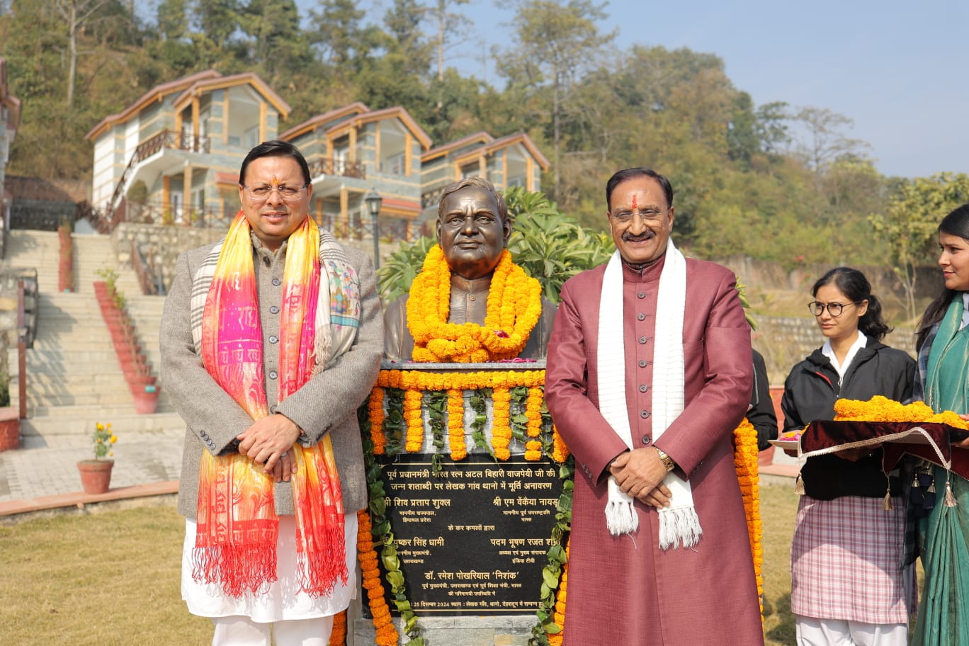 कार्यक्रम की अध्यक्षता कर रहे पूर्व मुख्यमंत्री, पूर्व केन्द्रीय मंत्री एवं लेखक गांव के संरक्षक डॉ. रमेश पोखरियाल निशंक’ ने कहा कि उत्तराखण्ड के निर्माण में अटल जी का महत्वपूर्ण योगदान है। उन्होंने राज्य निर्माण से जुड़े हुए कई मसलों पर साहसिक निर्णय लिये। डॉ. निशंक ने कहा कि अटल जी का साहित्य जीवंत साहित्य है, जितनी बार पढ़ो उतनी ही बार नई ऊर्जा, नई चेतना और नई आशा का संचार करती है। लेखक गांव की उत्पति का श्रेय भी उन्होंने अटल जी को दिया। उन्होंने कहा कि अटल जी ने एक बार कहा था कि निशंक, साहित्यिक क्षेत्रों में कार्य कर रहे लोगों के सामने कई चुनौतियाँ हैं, एक स्थान ऐसा अवश्य होना चाहिए जो उनकी सृजन शक्ति को प्रोत्साहित करे। आज उनके संकल्प से सिद्धि तक की यात्रा का प्रतिफल यह लेखक गांव है।