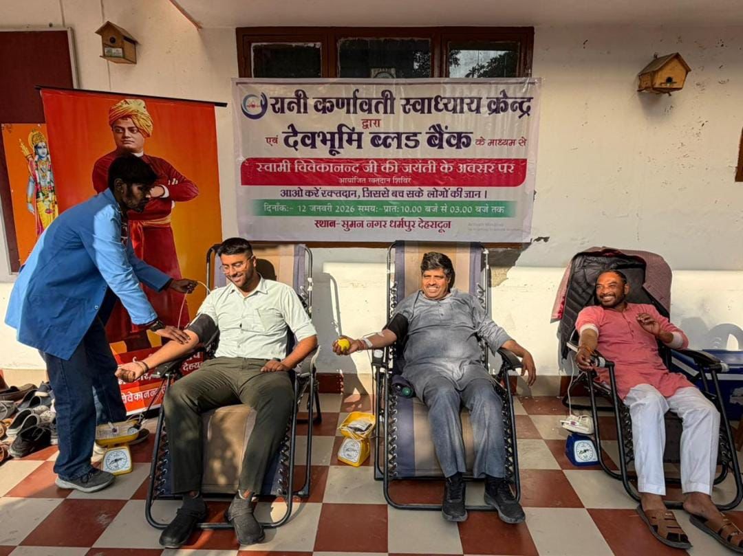 जनकल्याण न्यास द्वारा संचालित स्वाध्याय केंद्र रानी कर्णावती के तत्वावधान में स्वामी विवेकानंद जी की 162वीं जयंती के अवसर पर सामान्य ज्ञान प्रतियोगिता एवं रक्तदान शिविर का आयोजन किया गया। यह कार्यक्रम धर्मपुर संघ कार्यालय महानगर में संपन्न हुआ, जिसमें युवाओं ने बढ़-चढ़कर भागीदारी करते हुए रक्तदान किया।