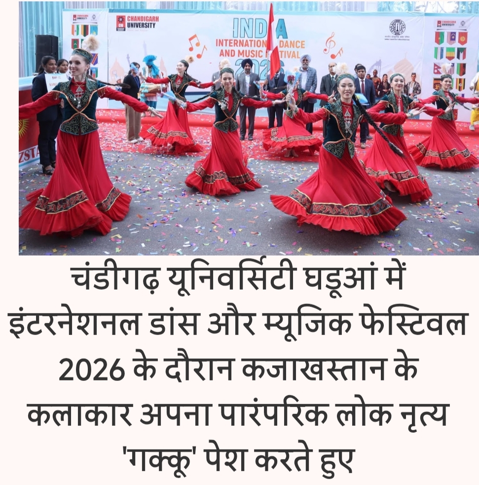 चंडीगढ़ यूनिवर्सिटी में दो दिवसीय 11वें इंडिया इंटरनेशनल डांस एंड म्यूजिक फेस्टिवल-2026 का भव्य आगाज हो गया। इंडियन काउंसिल फॉर कल्चरल रिलेशंस (आईसीसीआर) के सहयोग से आयोजित इस अंतरराष्ट्रीय महोत्सव की थीम ‘एक दुनिया, अनेक संस्कृतियां’ रखी गई है। फेस्टिवल में 33 देशों के 350 से अधिक कलाकार भाग ले रहे हैं, जो अपने-अपने देशों की सांस्कृतिक विरासत, लोकनृत्य, संगीत और कला का प्रदर्शन कर रहे हैं। यह आयोजन वैश्विक एकता और सांस्कृतिक विविधता का सशक्त संदेश दे रहा है।