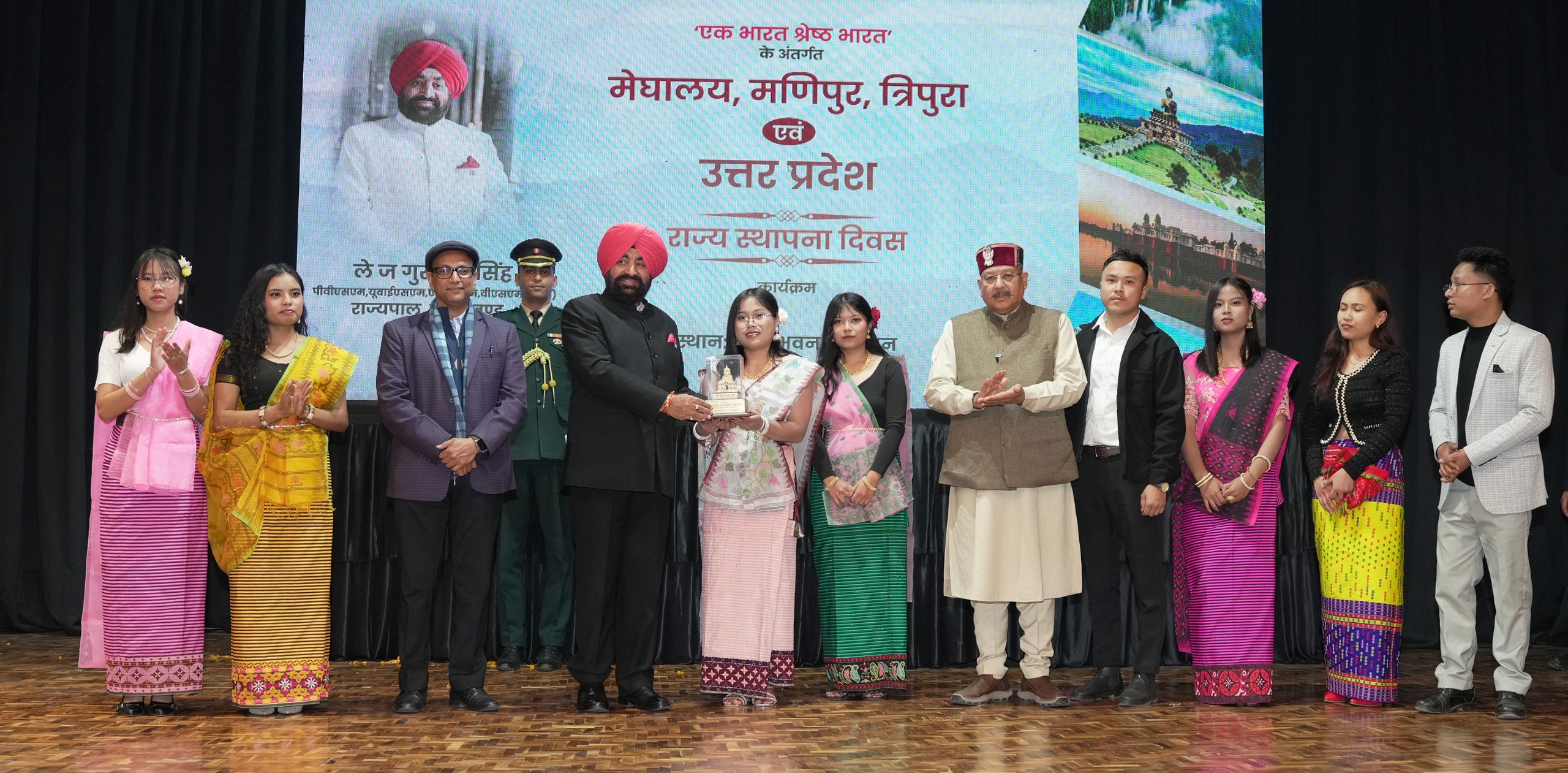 कार्यक्रम को संबोधित करते हुए राज्यपाल लेफ्टिनेंट जनरल गुरमीत सिंह (से नि) ने उत्तर प्रदेश, त्रिपुरा, मणिपुर और मेघालय के प्रदेशवासियों को राज्य स्थापना दिवस की हार्दिक शुभकामनाएं दीं। उन्होंने कहा कि यह आयोजन केवल सांस्कृतिक कार्यक्रम नहीं, बल्कि भारत की आत्मा, चेतना, सांस्कृतिक विविधता और भविष्य पर चिंतन का अवसर है। उन्होंने कहा कि ये चारों राज्य भारत की संघीय संरचना के सशक्त स्तंभ हैं, जो देश की एकता को और मजबूत करते हैं।