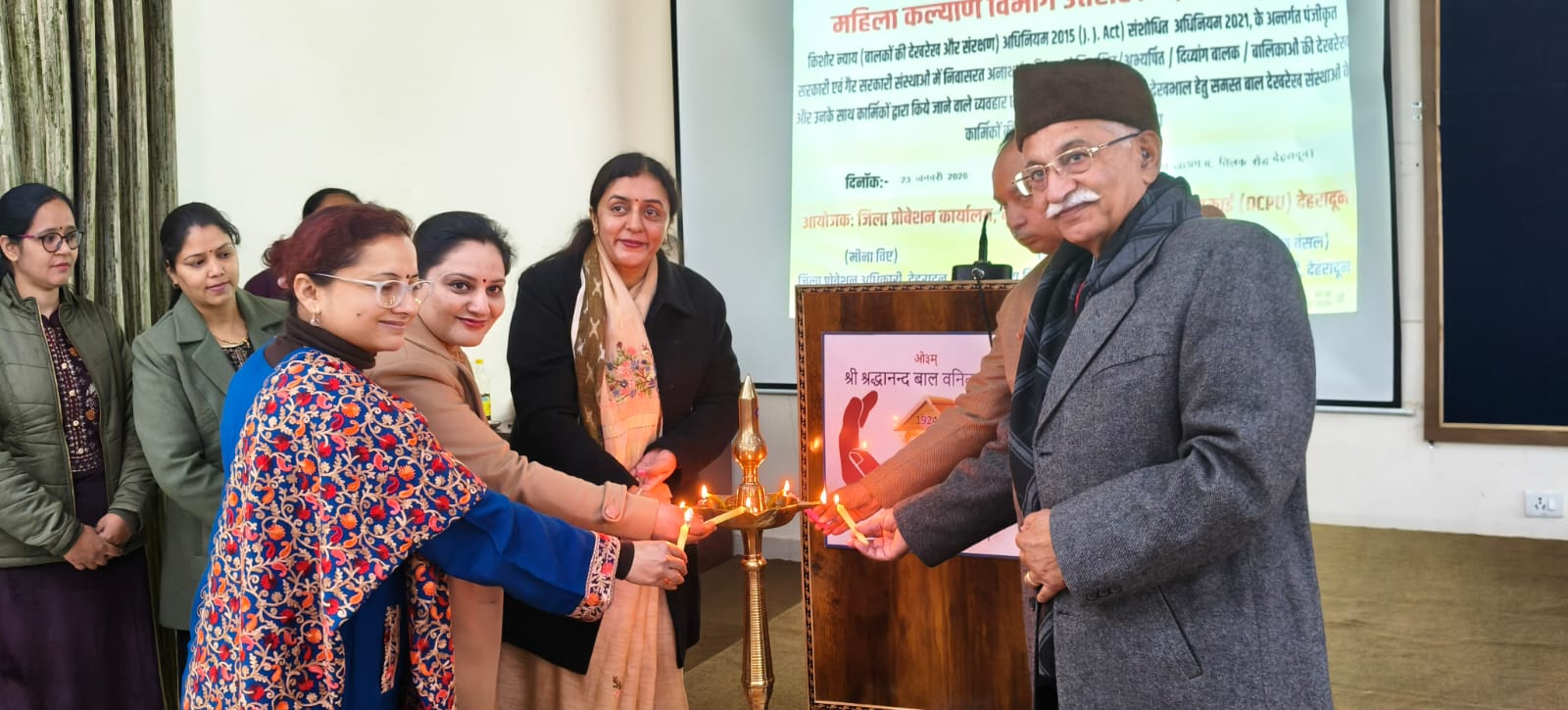 जिलाधिकारी सविन बंसल के निर्देशन में जिला प्रोबेशन अधिकारी, जिला बाल संरक्षण इकाई देहरादून द्वारा महिला कल्याण विभाग उत्तराखण्ड, किशोर न्याय अधिनियम, 2015 के अंतर्गत संचालित राजकीय, स्वैच्छिक बाल गृहों के कार्मिकों तथा चाइल्ड हेल्पलाइन 1098 में कार्यरत कार्मिकों का एक दिवसीय प्रशिक्षण कार्यशाला आयोजित की गई। इस दौरान जिला प्रोबेशन अधिकारी महिला कल्याण विभाग मीना बिष्ट, अपर मुख्य चिकित्सा अधिकारी डॉ वंदना सेमवाल, उप मुख्य परिवीक्षा अधिकारी महिला कल्याण राजीव नयन, अध्यक्ष बाल कल्याण समिति देहरादून नमिता ममगई, सुधीर गुलाटी, सुभाष चन्द्र गोयल, श्रद्धानंद बाल विनीता आश्रम के अधिष्टाता ने दीप प्रज्वलित कर कार्यशाला का शुभारंभ किया।