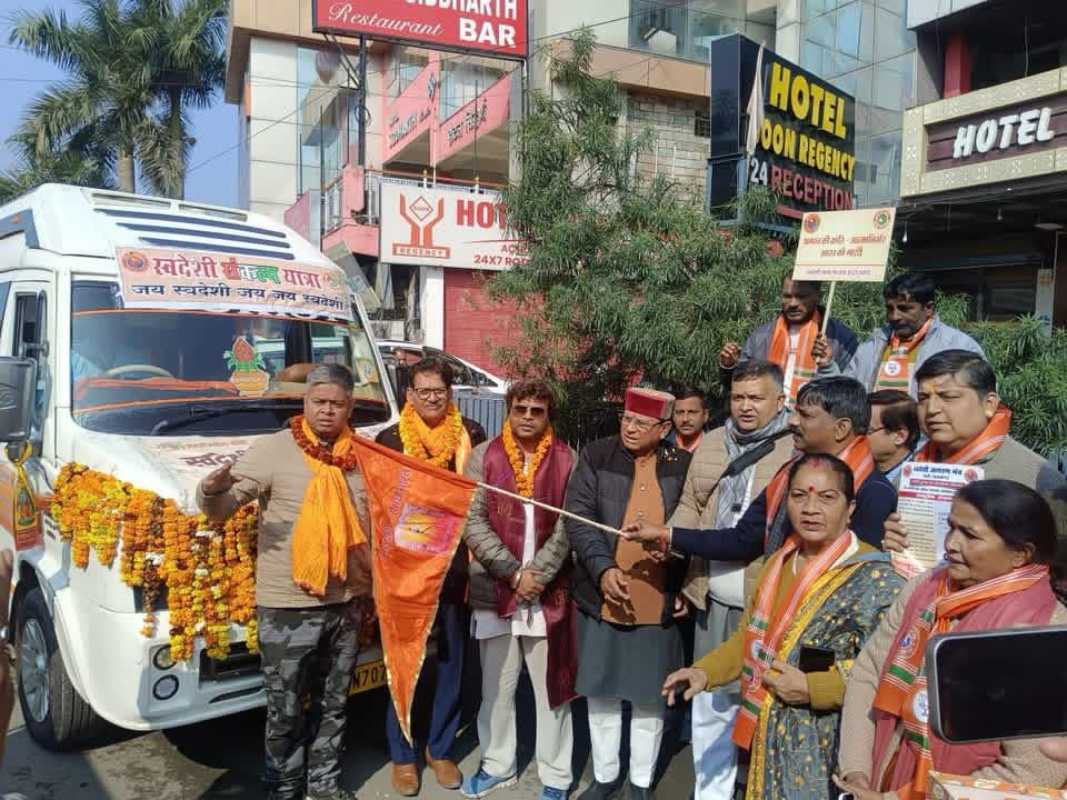 लखनऊ से प्रारंभ हुई स्वदेशी संकल्प यात्रा आज देहरादून पहुँची। लगभग 40 ज़िलों और 3000 किलोमीटर की यात्रा के लक्ष्य के साथ चल रही इस यात्रा का उत्तराखंड में प्रवेश पर नारसन बॉर्डर रोड स्थित आगमन गेट पर भव्य स्वागत किया गया। इसके पश्चात यात्रा का देहरादून शहर के विभिन्न स्थानों पर पुष्पवर्षा एवं स्वागत कार्यक्रमों के साथ अभिनंदन किया गया।