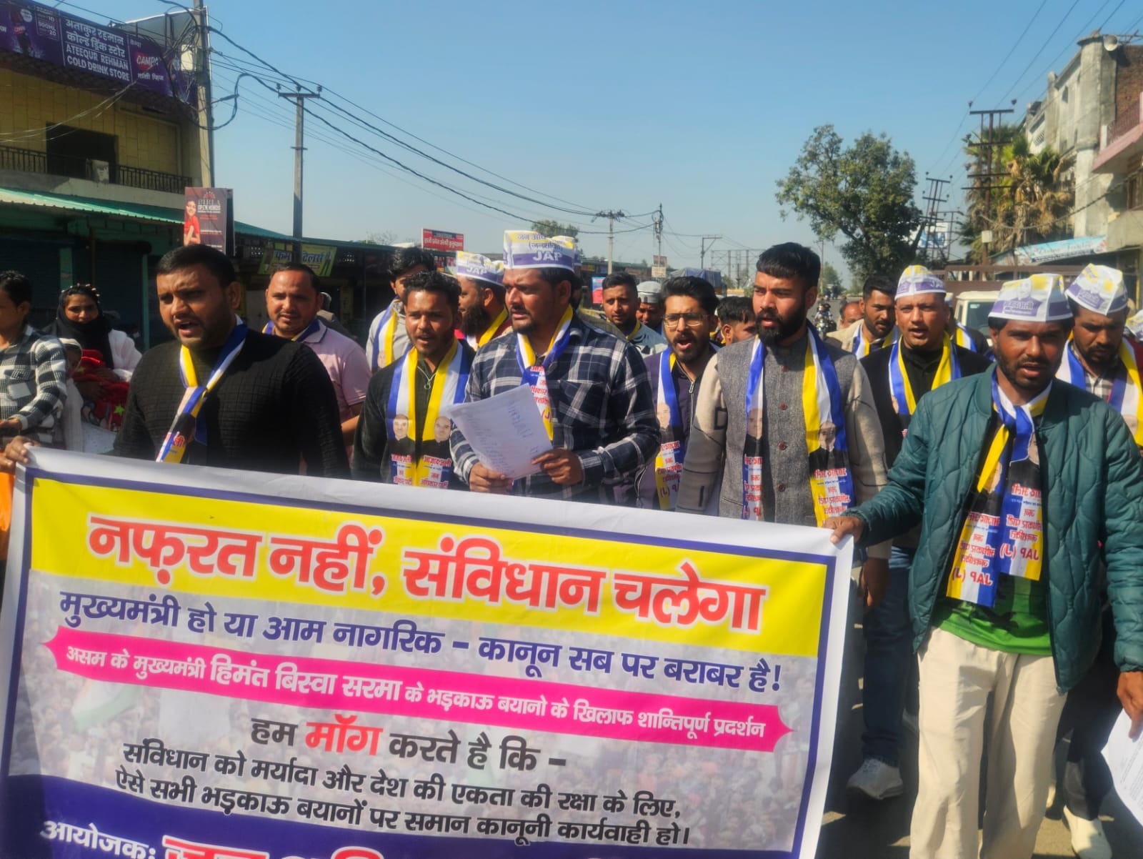 प्रदर्शन के दौरान पार्टी पदाधिकारियों ने पुलिस प्रशासन से मांग की कि हिमंत बिस्वा सरमा के खिलाफ संबंधित धाराओं में मुकदमा दर्ज कर निष्पक्ष जांच शुरू की जाए, ताकि समाज में नफरत फैलाने वाली गतिविधियों पर रोक लगाई जा सके और कानून की मर्यादा कायम रहे।