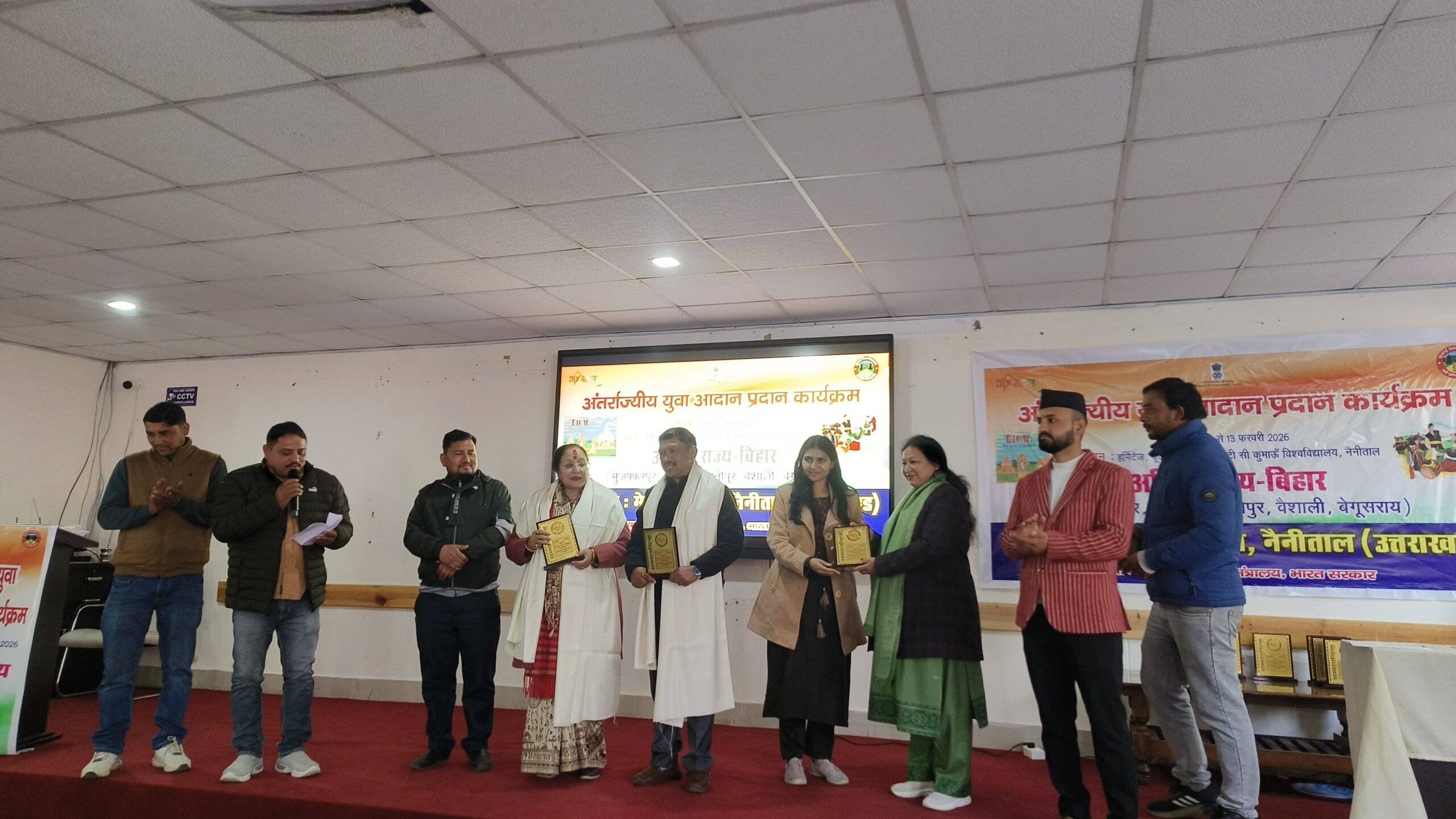 मेरा युवा भारत नैनीताल द्वारा युवा कार्य एवं खेल मंत्रालय, भारत सरकार के तत्वावधान में 9 से 13 फरवरी तक हर्मिटेज, यूजीसी–एमएमटीटीसी, कुमाऊँ विश्वविद्यालय, नैनीताल में आयोजित अंतर-राज्य युवा आदान-प्रदान कार्यक्रम का अंतिम दिवस उत्साह, अनुशासन और सांस्कृतिक सौहार्द के साथ संपन्न हुआ। कार्यक्रम में बिहार राज्य के पटना, बेगूसराय, मुजफ्फरपुर, वैशाली एवं समस्तीपुर जिलों से आए कुल 37 प्रतिभागियों ने सहभागिता की।