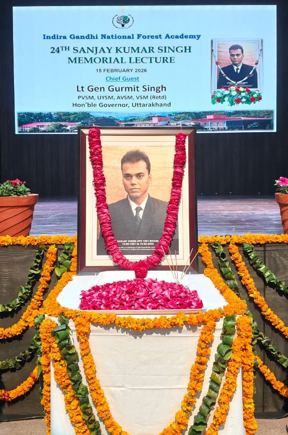देहरादून 15 फरवरी। इन्दिरा गाँधी राष्‍ट्रीय वन अकादमी में 24वें संजय कुमार सिंह स्‍मृति व्‍याख्‍यान का आयोजन हुआ। इस अवसर पर उत्तराखंड के राज्‍यपाल लेफ्टि. जनरल गुरमीत सिंह बतौर मुख्‍य अतिथि के रूप में शामिल हुए और स्‍मृति व्‍याख्‍यान दिया।