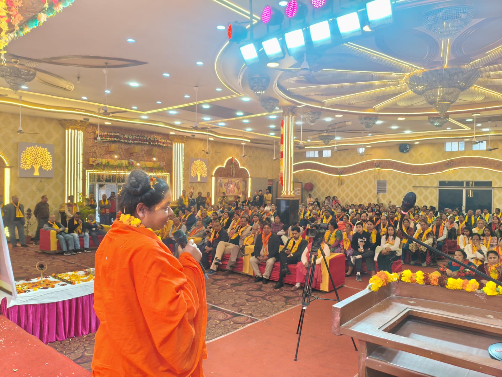 वहीं साध्वी रेणुका जी ने महिलाओं की सुरक्षा, संस्कार और व्यक्तित्व विकास पर प्रभावशाली विचार रखे। उन्होंने अहिल्याबाई होलकर, रानी दुर्गावती और रानी लक्ष्मीबाई के उदाहरण देते हुए कहा कि “नारी कभी अबला नहीं रही।” उन्होंने गुरुकुल परंपरा की आवश्यकता पर बल देते हुए कहा कि जब तक देश में गुरुकुल आधारित शिक्षा रही, तब तक भारत ज्ञान और समृद्धि में अग्रणी रहा। साथ ही उन्होंने अधिकारों के साथ-साथ कर्तव्यों के निर्वहन पर भी जोर दिया।