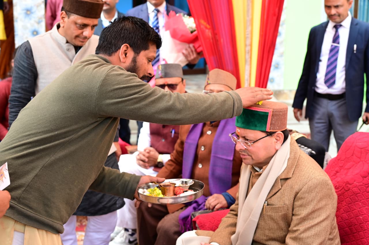 चिन्यालीसौड़ में भाजपा बूथ अध्यक्ष की पुत्री के विवाह में शामिल हुए मुख्यमंत्री धामी