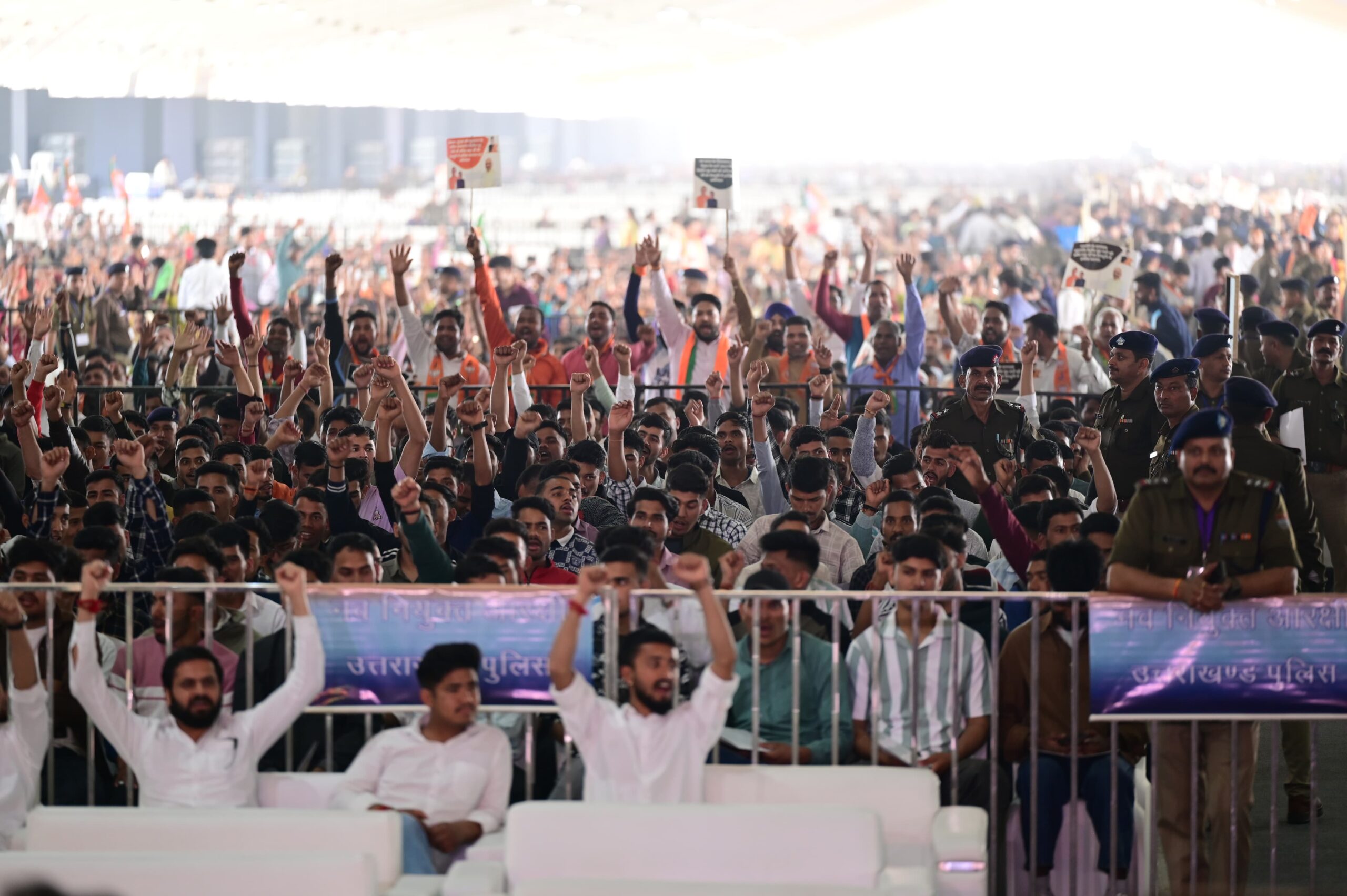 कार्यक्रम में उमड़ी विशाल भीड़ ने केंद्रीय गृह मंत्री अमित शाह और मुख्यमंत्री पुष्कर सिंह धामी के मंच पर पहुंचते ही जोरदार नारेबाजी के साथ स्वागत किया। आयोजन में महिलाओं और युवाओं की विशेष भागीदारी रही तथा प्रदेश के विभिन्न जिलों से बड़ी संख्या में लोग हरिद्वार पहुंचे।