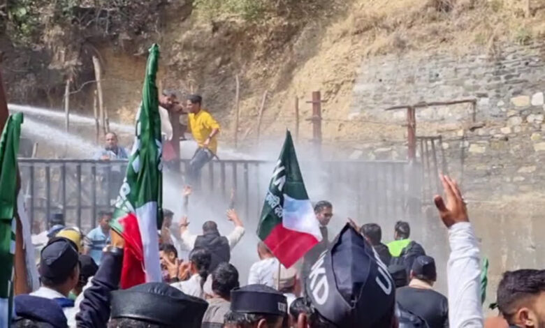 गैरसैंण 09 मार्च । भराड़ीसैंण विधानसभा में आयोजित बजट सत्र के बीच विधानसभा के बाहर उत्तराखण्ड क्रांति दल ने प्रदेश के कई ज्वलंत मुद्दों को लेकर उग्र प्रदर्शन किया। विधानसभा की ओर बढ रहे यूकेडी कार्यकर्ताओं को पुलिस ने रोकने का प्रयास किया। इस दौरान प्रदर्शनकारियों और पुलिस के बीच जमकर धक्का मुक्की भी हुई। आखिर में पुलिस ने प्रदर्शनकारियों को रोकने के लिए वाटर कैनन का भी प्रयोग करना पड़ा।