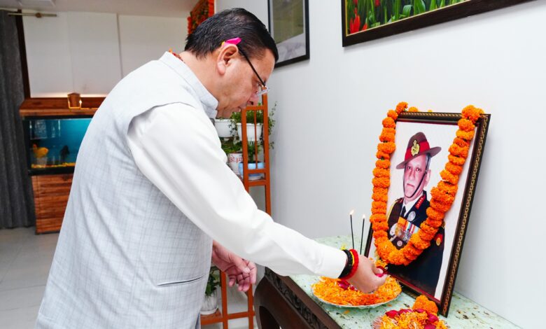 जनरल बिपिन रावत की जयंती पर मुख्यमंत्री धामी ने अर्पित किए श्रद्धासुमन