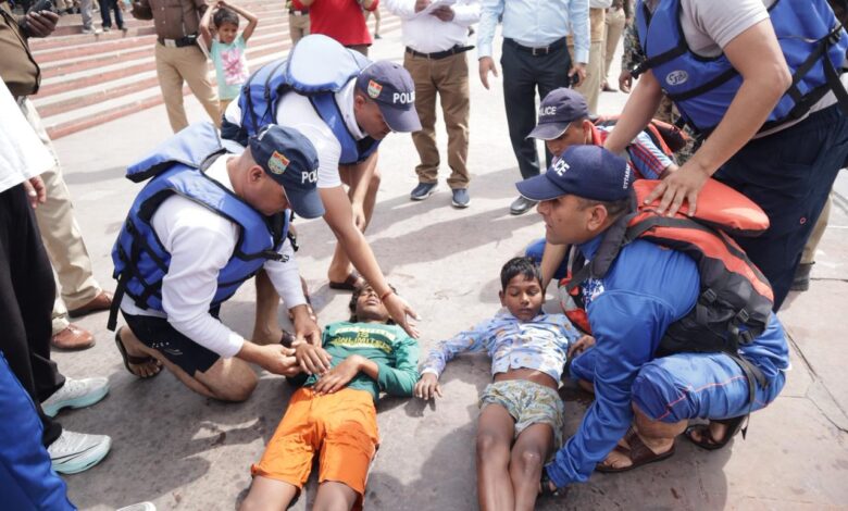 ऋषिकेश क्षेत्र में त्रिवेणी घाट पर गंगा नदी का जलस्तर बढ़ने से तीर्थ यात्रियों के बहने की स्थिति का भी अभ्यास किया गया। इस दौरान 2 लोगों के लापता होने का परिदृश्य बनाकर एसडीआरएफ, पुलिस और जल पुलिस की टीमों द्वारा संयुक्त रेस्क्यू ऑपरेशन चलाया गया, जिसमें दोनों को सकुशल खोज निकाला गया। वहीं ट्रांजिट कैंप में बम सूचना से उत्पन्न भगदड़ में 4 लोग घायल दर्शाए गए, जिन्हें अस्पताल पहुंचाया गया।