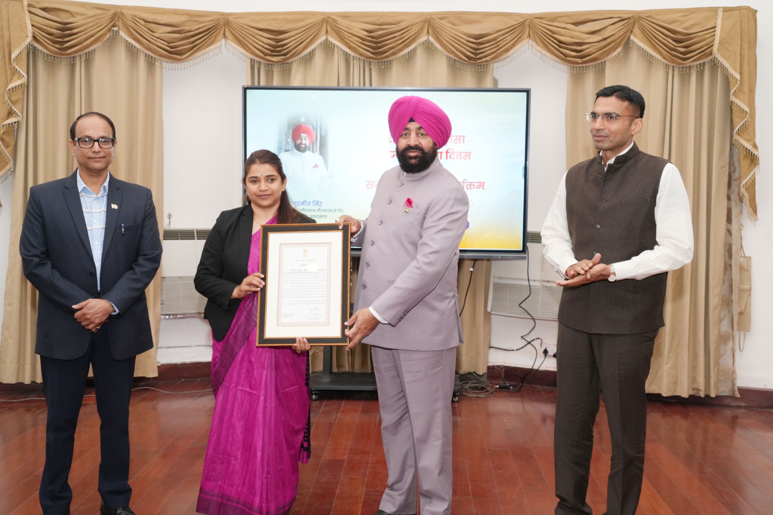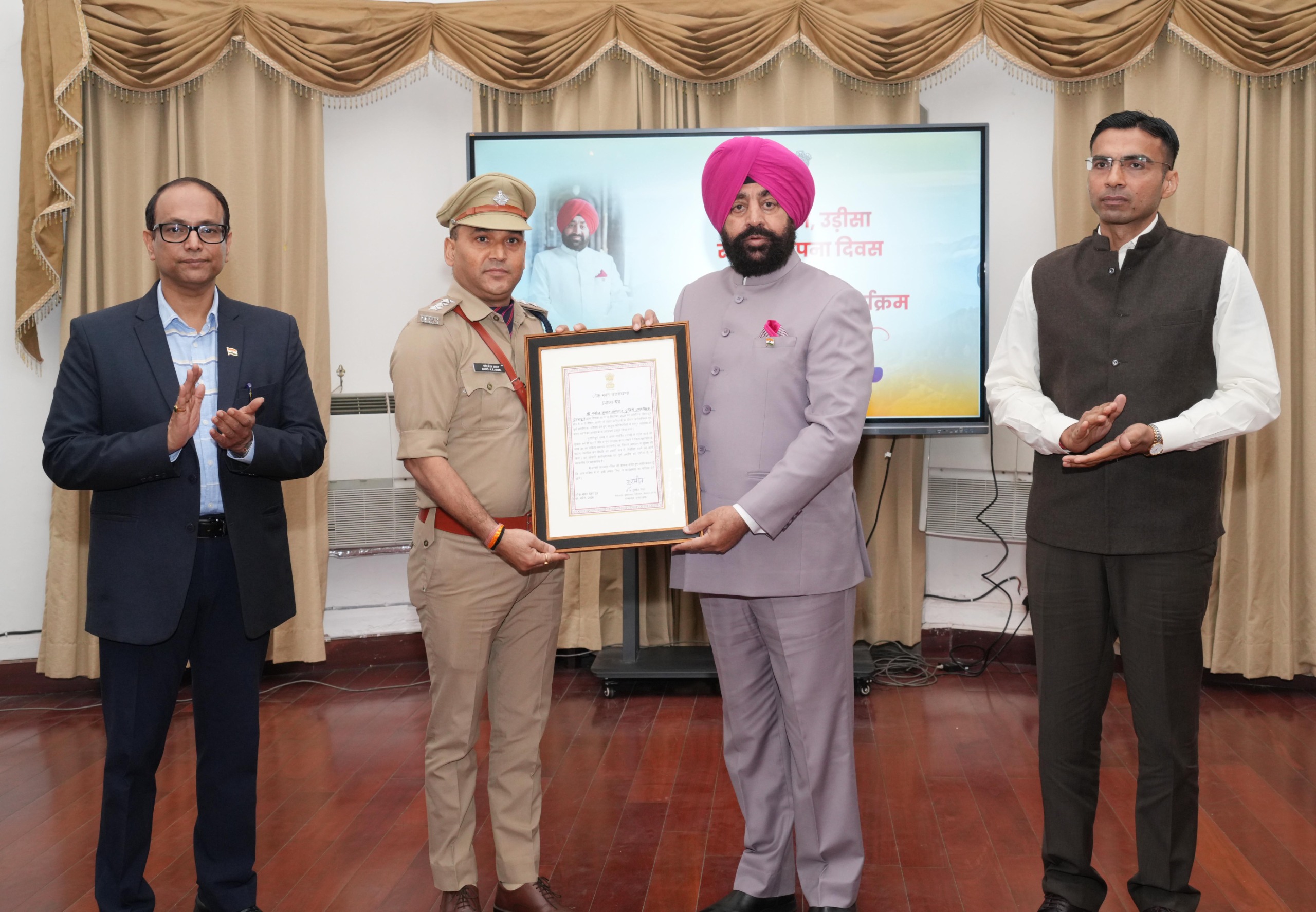 देहरादून 01 अप्रैल, 2026 । राज्यपाल लेफ्टिनेंट जनरल गुरमीत सिंह (से नि) ने आज लोक भवन में आयोजित सम्मान कार्यक्रम में आपदा के दौरान उत्कृष्ट कार्य करने वाले देहरादून जिले के कार्मिकों को सम्मानित किया। इस अवसर पर उन्होंने सभी सम्मानित कार्मिकों के समर्पण एवं कर्तव्यनिष्ठा की सराहना करते हुए उन्हें अन्य कार्मिकों के लिए प्रेरणा स्रोत बताया।