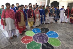 नारी शक्ति वंदन अधिनियम पर गोष्ठी, छात्राओं ने रंगोली बनाकर दिया संदेश