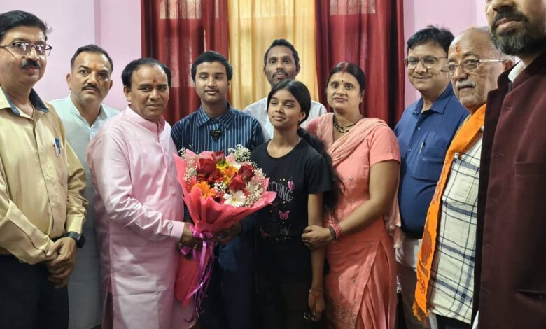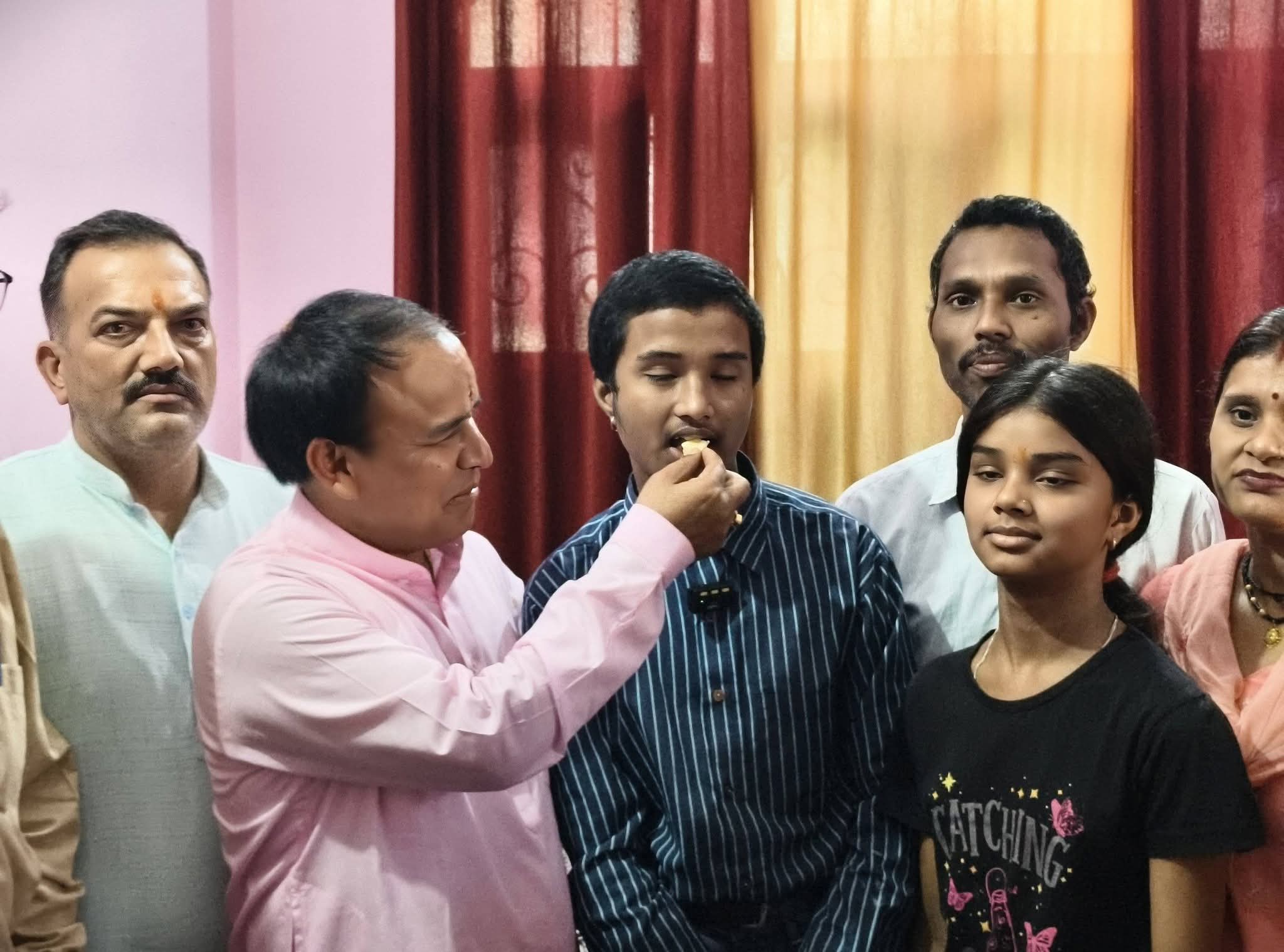 *हाईस्कूल बोर्ड परीक्षा के टाॅपर अक्षत के घर पहुंचे शिक्षा मंत्री, दी बधाई*