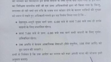 बड़े वाहनों की नो एंट्री ,देहरादून-मसूरी मार्ग पर रात में आवाजाही बंद